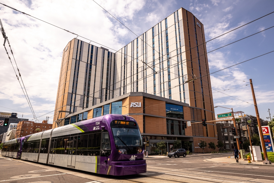 Here’s how ASU Downtown Phoenix Has Transformed the City Article originally posted on AZ Big Media on September 9, 2021 Above: Fusion on First, a combination high-rise residence hall and academic-entrepreneurship space, welcomed its first residents on Aug. 16. The first floor of the new building will offer some student amenities as well a makerspace. The second and third floors will feature academic space with fashion being prominent on the second floor and music programing on third. (Photo by Charlie Leight, ASU News) It was once a place where people cleared out after work, where most restaurants closed by 3 p.m., where only the occasional sports game or First Fridays art walk drew a younger crowd. The ASU Downtown Phoenix campus changed that. Now Arizona State University students live and learn on the Downtown Phoenix campus, bringing an energy and presence that have helped inject new life into the area. It’s easy to forget that the Downtown Phoenix campus’ vibrant collection of new and renovated buildings, residence halls, entrepreneurship spaces and streetscapes were once vacant acreage, parking lots and neglected Investment space. Now it’s a place where students study health and nursing, journalism, public service and law; gather in open spaces for social events; and do outreach with various local communities. The campus marks its 15th anniversary this school year. “The ASU Downtown Phoenix campus represents the best of what is possible when a city joins forces with an innovative university to address a community need and reimagine all the ways they can collaborate to be of service,” said ASU President Michael Crow. “ASU believes that universities should be accessible wherever there is an opportunity to help learners and the community at large to thrive, and we’re proud of the growth and experiences our downtown campus creates for learners and partners alike, as well as the robust, cross-sector network it has revitalized in the heart of our metro region.” Prior to the Downtown Phoenix campus, ASU had never tried to sell an urban experience. Its establishment came as result of an unprecedented referendum. Public money was involved. The basketball arena was downtown, but unless there was a game, the streets were empty in the evenings. Civic leaders knew the area needed more to push it to the next level. And that included populating the area with students who would live, work, study and shop there. In short, these students would become citizens of the city and able to pursue their careers in a more dynamic arrangement. New York City has Columbia. Los Angeles has UCLA. Phoenix needed an urban university. But there was no need to create one from scratch. What follows is the story of how a group of very determined people turned a napkin sketch into a viable 20-acre, multimillion-dollar university campus in a short amount of time that had skeptics wondering if it would ever really happen. Two decades ago, the streets of downtown Phoenix were populated by business people and the occasional event goer. Now students bring their energy and potential to ASU’s campus, where a line of families moving students into the residence halls is a common sight each August. Photo by Charlie Leight/ASU News Breakfast of champions The Downtown Phoenix campus wasn’t initially created on an architect’s draft table or an engineer’s rendering. It was sketched on a plain, white restaurant napkin. It started with two great minds — and two empty stomachs — over breakfast in 2003. Crow and then-Mayor Phil Gordon wanted more than a satellite school. They wanted bacon and eggs — and they wanted thousands to live and study in downtown Phoenix for a very long time. “Our first meeting took place at The Good Egg on Central and Camelback in Phoenix when I was running for Phoenix mayor,” said Gordon, who won the race in September 2003 and served as Phoenix’s mayor from 2004 to 2012. “Bringing ASU to the downtown area was one of things I pushed during my campaign. Dr. Crow said, ‘Great idea. Come back — win or lose — and let’s move this concept forward.’” They met again at the same restaurant shortly after Gordon’s victory, vowing to work together to take the university, the city and the region to new heights. Gordon, a municipal leader unafraid of taking on challenges, and Crow, the academic visionary who felt that the old college system was broken and who had declared ASU the “New American University,” seemed perfectly matched. Phoenix and the university’s burgeoning popularity added pressure to act swiftly to create an environment that would attract a “creative class” — people who would build a knowledge industry and develop technologies to nourish Arizona in the 21st century. Despite Phoenix’s designation as one of the nation’s largest cities, and its growth and prosperity in the new millennium, its core had been somewhat hollow, especially after business hours. Merging students, staff and faculty with merchants, artisans, government and nonprofits would inject a much needed, livelier ambiance in the city’s core. It would also help accommodate ASU’s booming numbers. In order to meet the projected growth in college-bound Arizona high school graduates, the university needed capacity. ASU began shifting its focus from Tempe to other campuses in the Valley to handle the overflow: ASU’s West and Polytechnic campuses, and a small satellite facility at the Mercado at Seventh and Van Buren streets. Both Crow and Gordon knew expanding ASU to a full-scale campus in downtown Phoenix made perfect sense. ASU Adjunct Professor Isaac Easley takes a headshot of Cronkite News Sports team member Mariah Graves, a graduate student in sports journalism, at the Cronkite News set on Aug. 19. The Walter Cronkite School of Journalism and Mass Communication was one of the first colleges that moved to the Downtown Phoenix campus 15 years ago. Photo by Deanna Dent/ASU News 